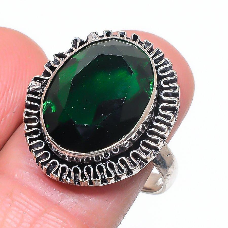 Хромовый диопсид Ручной работы Ювелирное изделие из стерлингового серебра 925 пробы Кольцо Размер 9 o8r08