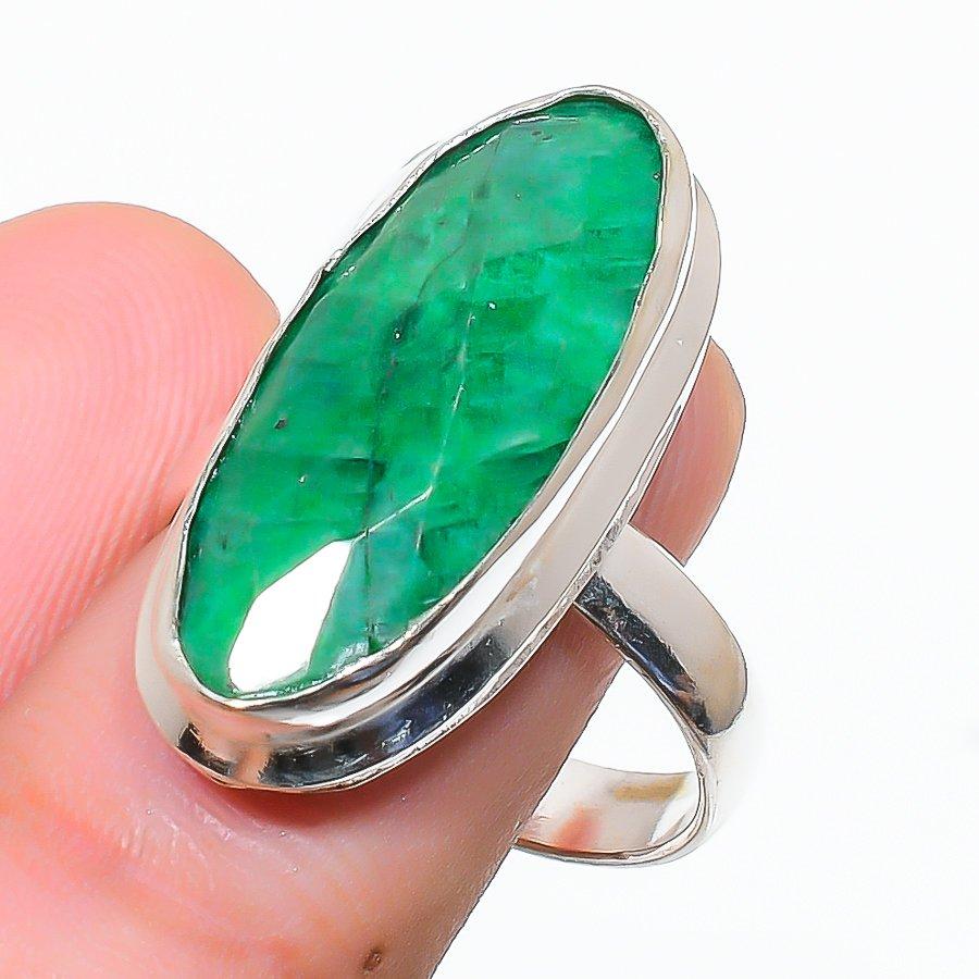 Изумруд(Смоделированный) Ювелирное кольцо из стерлингового серебра 925 пробы с драгоценным камнем, размер 9,5
