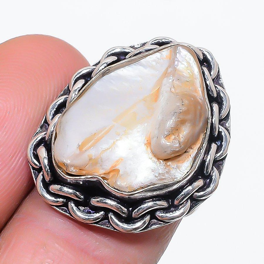 Жемчуг Бива Ручная работа Ювелирное изделие из стерлингового серебра 925 пробы Кольцо Размер 6 d8l85