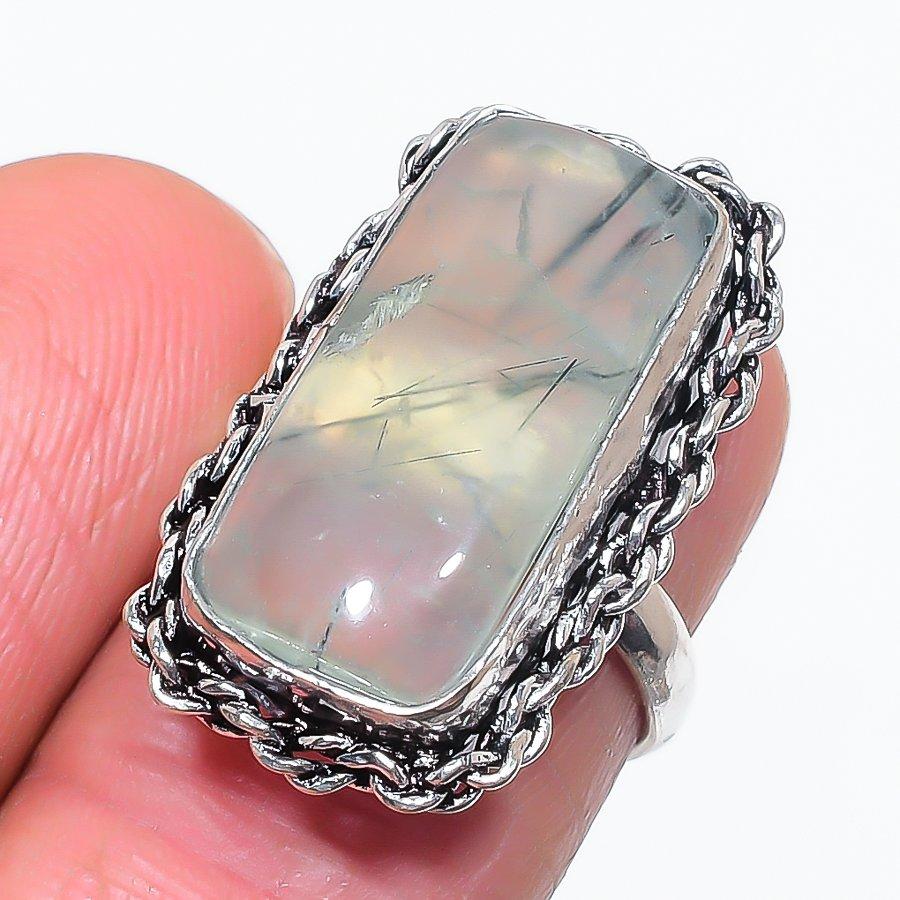 Пренит Ручной работы Ювелирное изделие из серебра 925 пробы Кольцо Размер 6 c6M53