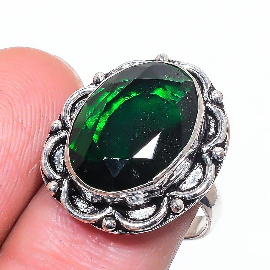 Хромовый диопсид Ручная работа 925 стерлинговое серебро Ювелирное кольцо Размер 8 l2P32