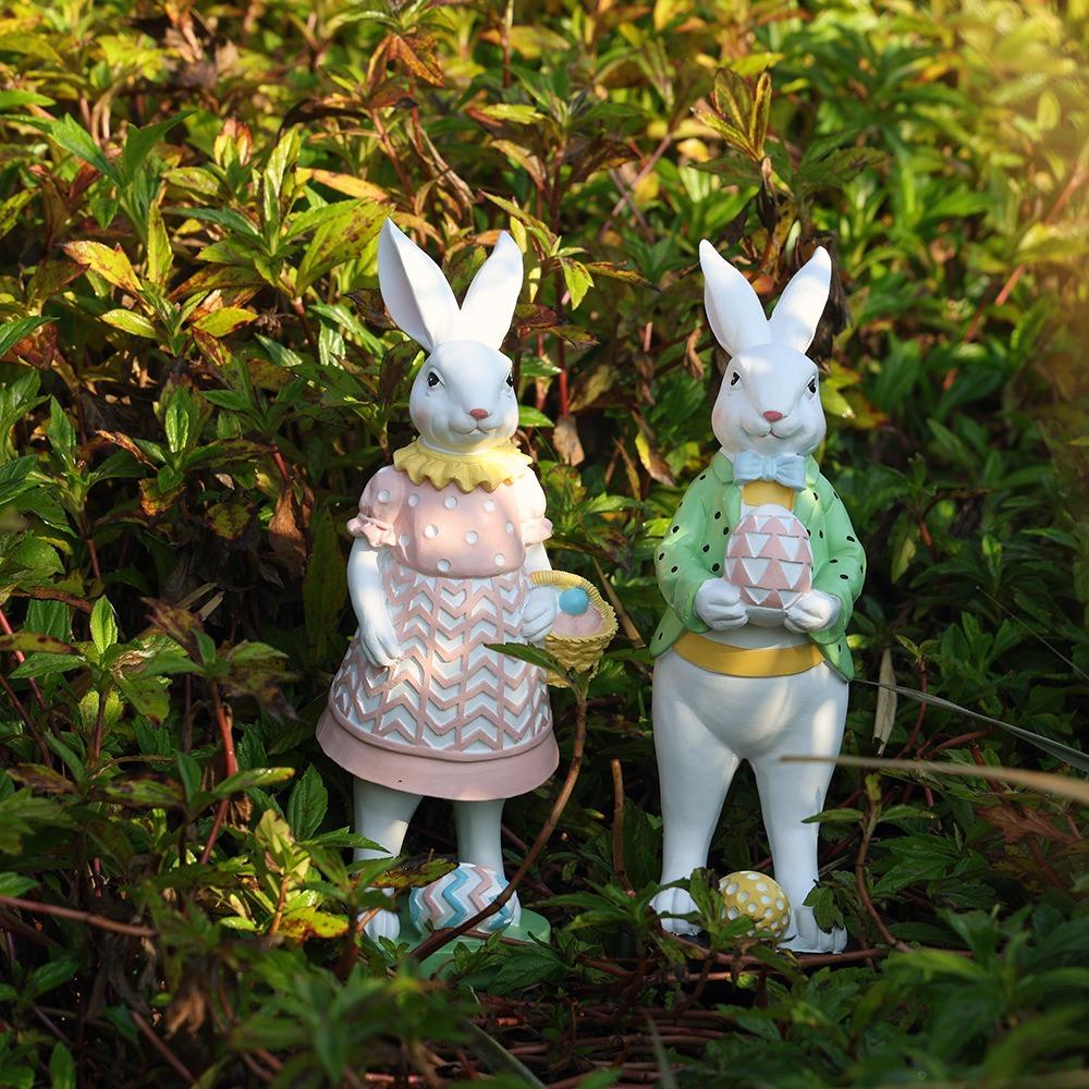 Изделия из смолы пасхальные фигурки кроликов в виде яиц милые скульптуры животных садовая лужайка на открытом воздухе