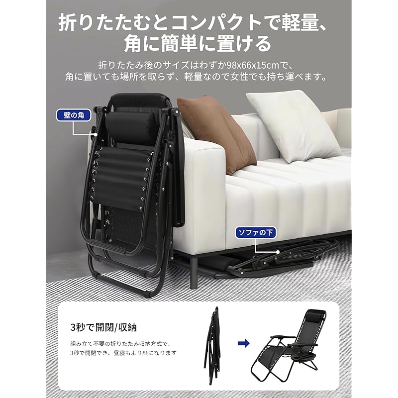 Опыт использования кресла-реклайнера: Расслабьтесь в положении, в котором все ваше тело расслаблено — говорят, что «откидывающееся кресло» настолько удобно, что в нем ощущается «невесомость». Оно складное, поэтому его можно брать с собой, и вы можете использовать его во время кемпинга, чтобы прекрасно провести время на природе. Конечно, даже если вы используете его дома, оно поможет вам отдохнуть во время дневного сна и ночного отдыха.