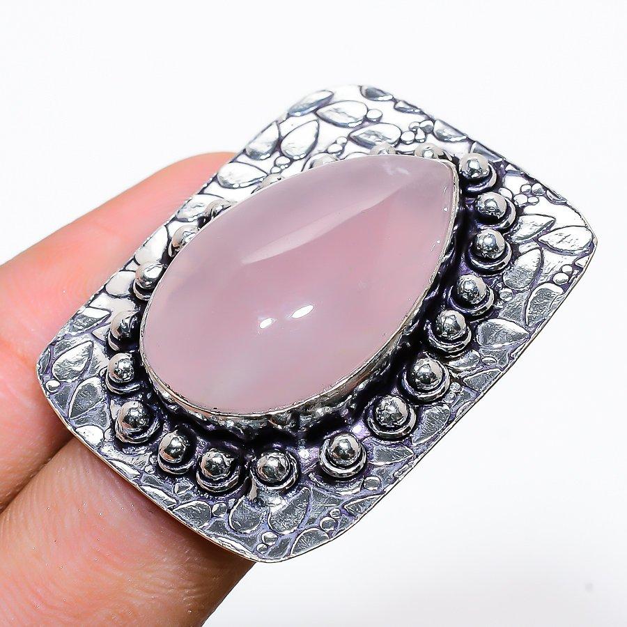 Розовый Кварц Ручной Работы Ювелирное Изделие из Стерлингового Серебра 925 Пробы Кольцо Размер 7.5 M1w75