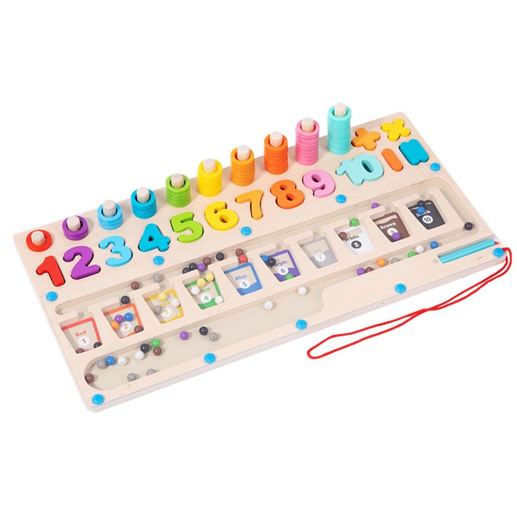Wooden Teether 3 in 1 Montessori Wooden Stick Educational Educational Shape Fingertip Early Maze Color Number 3 4 7 Years School Entrance Kindergarten