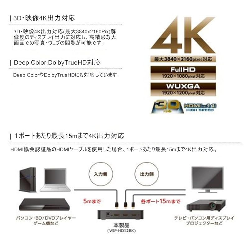 соединитель: ●Вход: HDMI типA19pin×1 ●Выход: HDMIтипA19pin×2