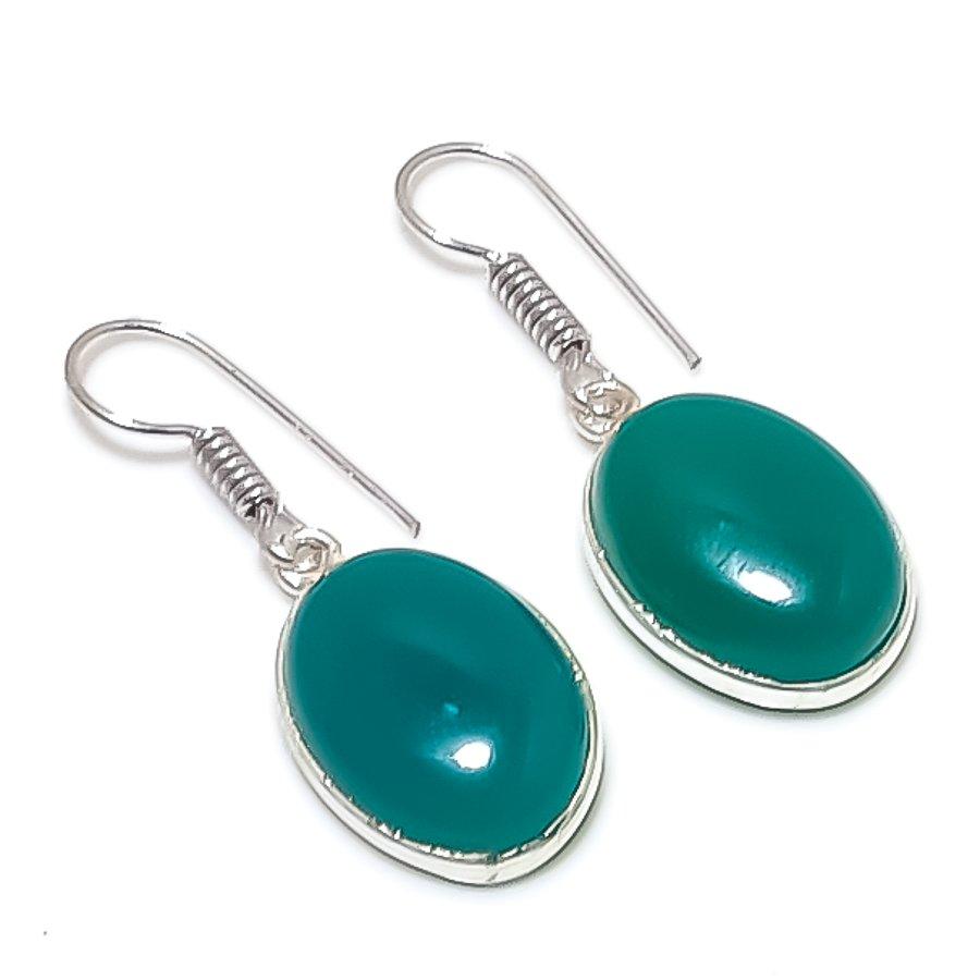 Зеленый Оникс Ручной работы Ювелирное изделие Серьга из стерлингового серебра 925 пробы 1,38" n5r14
