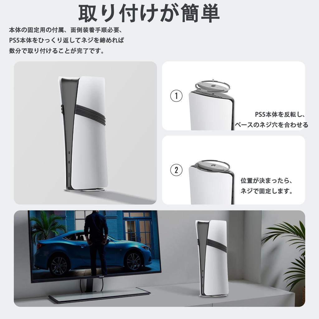 [Простота установки] В комплект подставки PS5 входят винты для крепления основного блока, поэтому нет необходимости в сложных процедурах установки, просто переверните основной блок PS5 и затяните винты, и вы сможете завершить установку за несколько минут.. Он упакован в стильную коробку и поставляется с инструкцией на японском языке, поэтому это отличная идея для подарка другу, любимому человеку или ребенку.. .