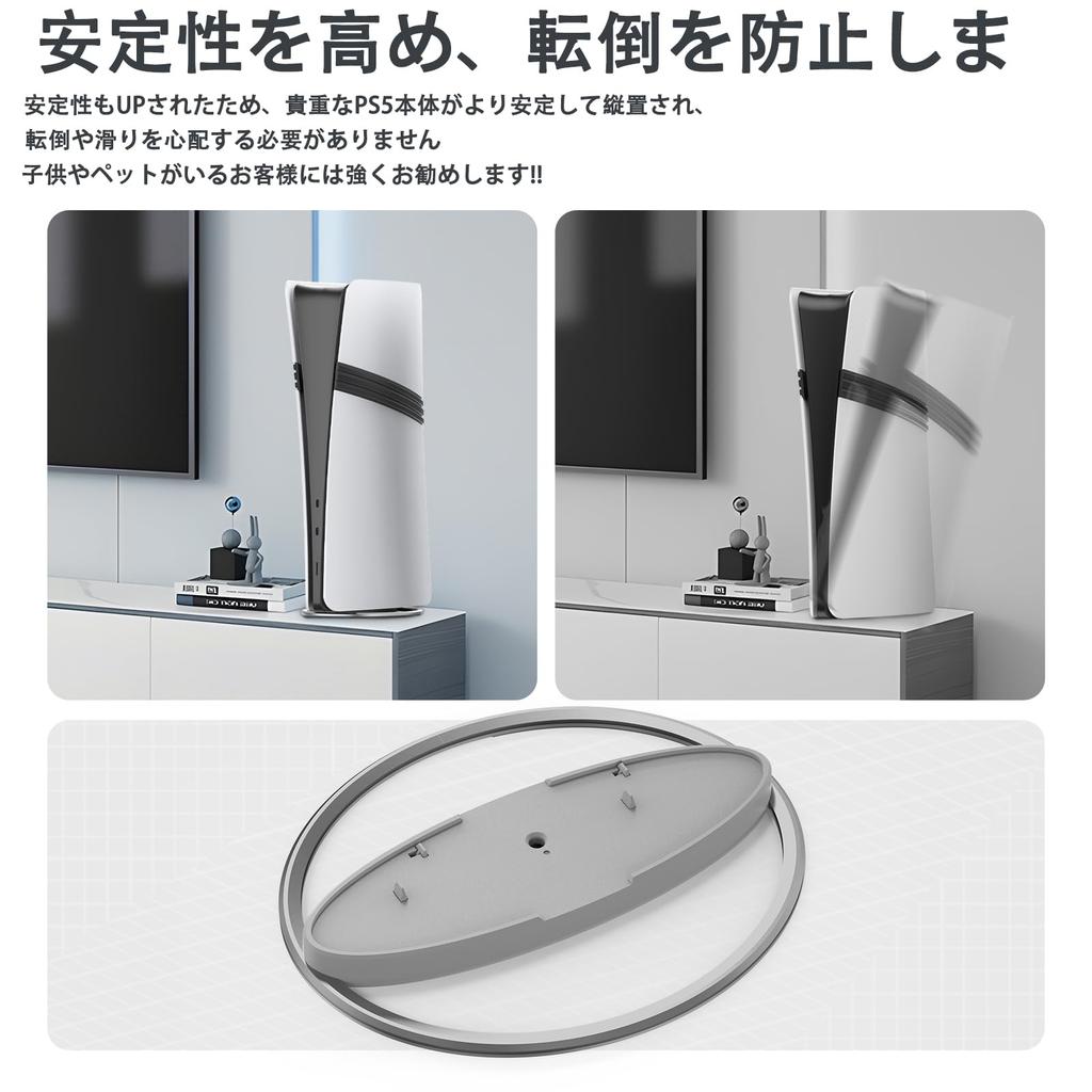 [Подставка совместима со всеми моделями PS5] Эта вертикальная подставка для PS5 совместима со всеми моделями PS5.. (Дисковая версия и цифровая версия) В комплект входят нескользящее силиконовое кольцо на дне и винты для крепления основного блока.. Это предотвращает падение консоли PS5 из-за случайных ударов и сохраняет ее в устойчивом положении.