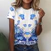 Летний топ с круглым вырезом и 3D-цветочным принтом, модные повседневные женские футболки с короткими рукавами