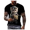 3D цифровой принт хип-хоп кот мультяшное животное мужской характер тренд стиль Харадзюку мода удобный быстросохнущий короткий рукав топ