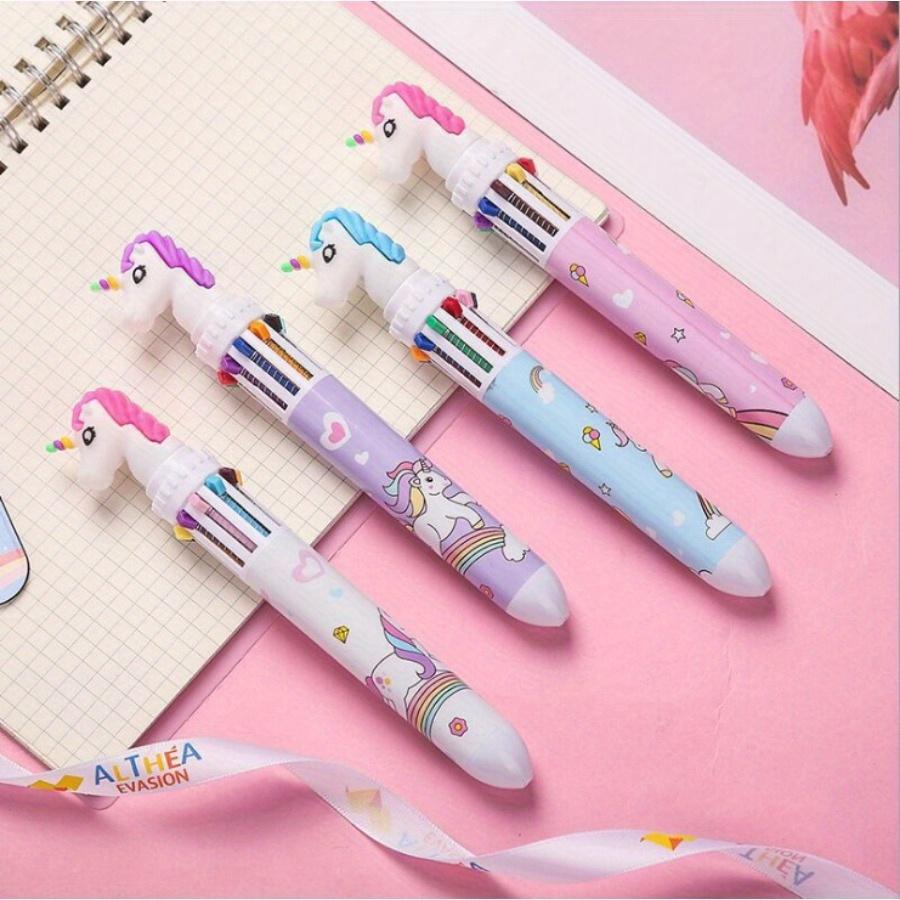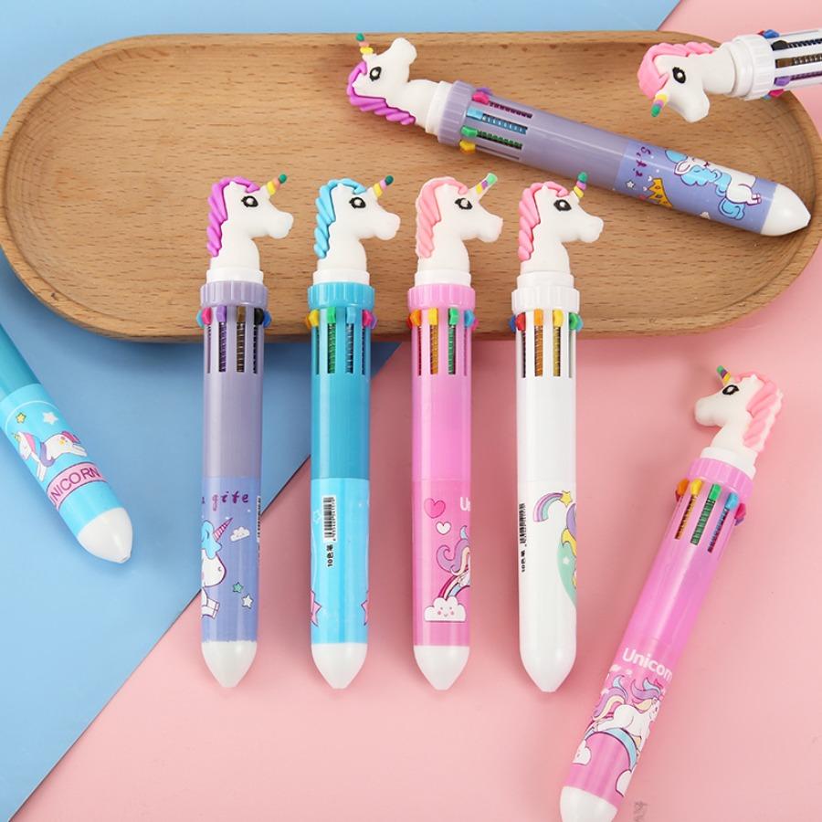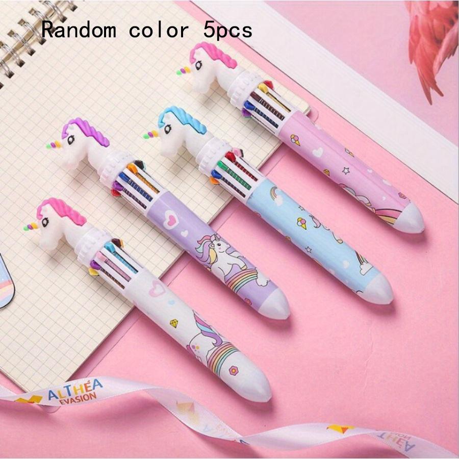 Возвращение в школу, набор из 5 шт. 0,5 мм, шариковая ручка с изображением мультяшного единорога, десять цветов, цветная пластиковая ручка для учебы и офиса.