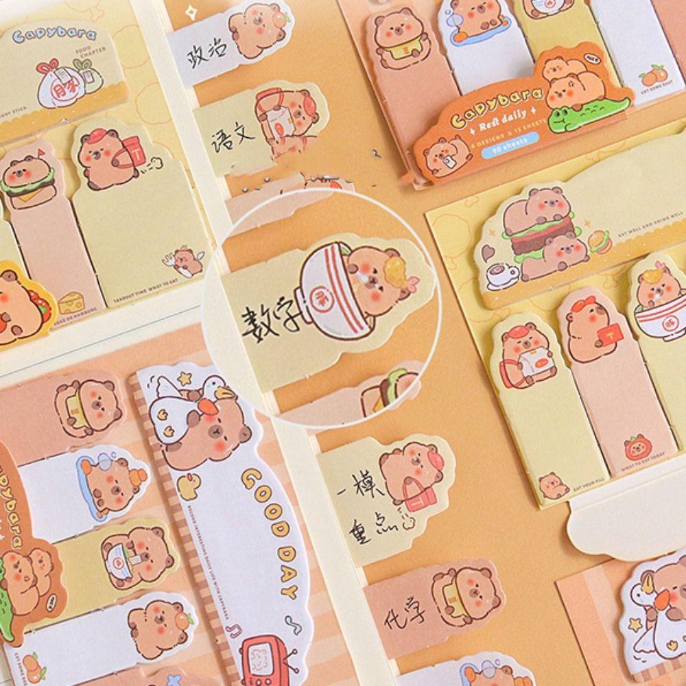 Письмо Мультяшные липучки для заметок 90 листов Блокнот для заметок Милая капибара Индексные вкладки Сменная бумага для наполнения