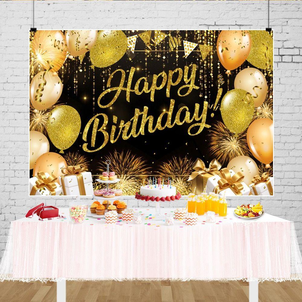 Черный Золотой С Днем Рождения Фото Фон Блестящий Плакат Фото Реквизит Фотостудия