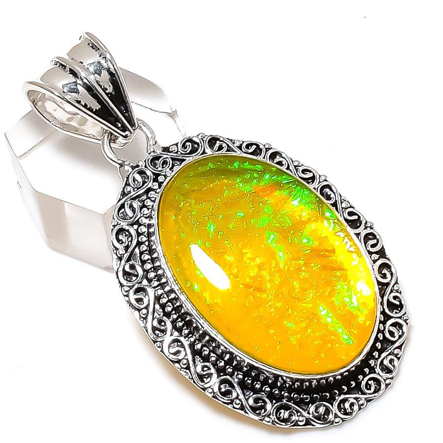 Натуральный желтый триплет опал 925 стерлинговое серебро ювелирная подвеска 2,17"