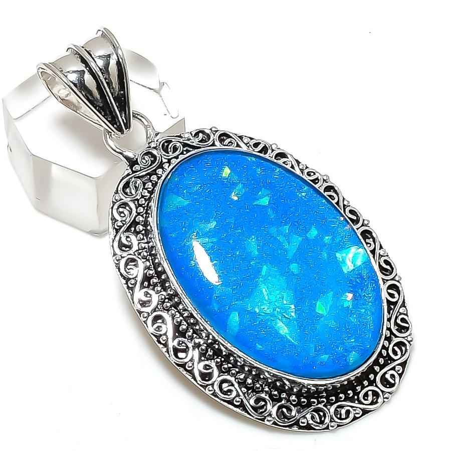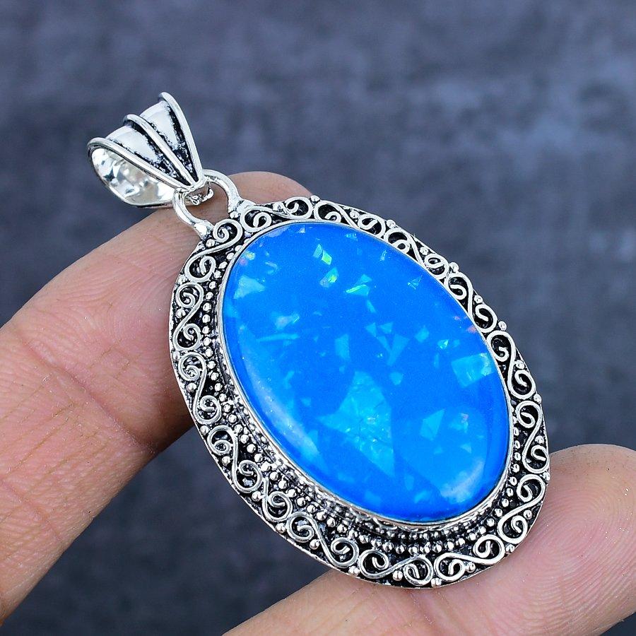 Подвеска из натурального голубого триплетного опала из стерлингового серебра 925 пробы 2,29 дюйма