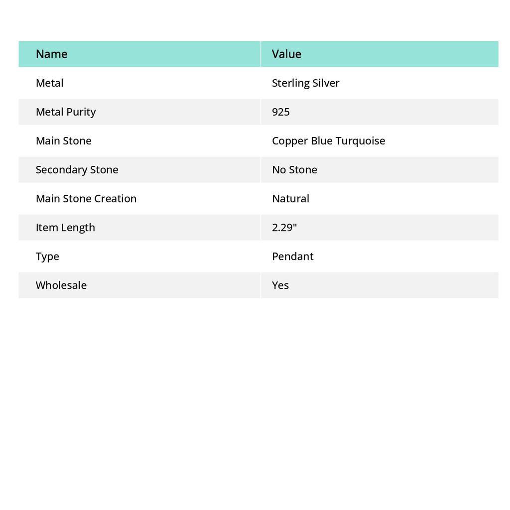 Подвеска из натурального серебра 925 пробы с бирюзовым покрытием и медным оттенком 2,29 дюйма