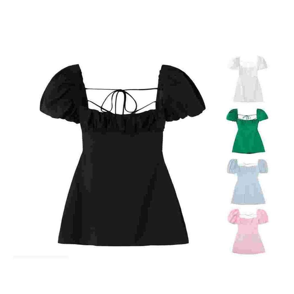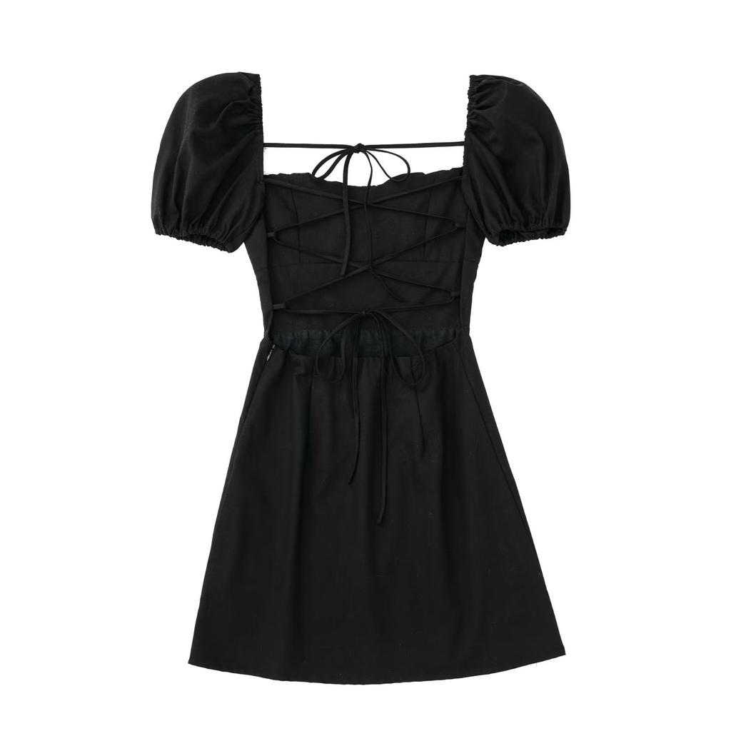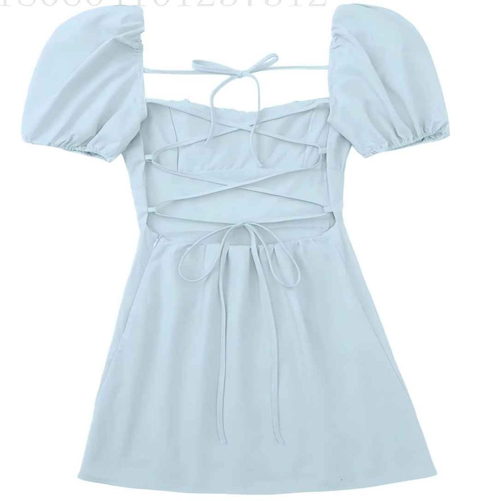 Женское белое модное платье из льняной смеси с квадратным вырезом и короткими рукавами-фонариками с открытой спиной и перекрещивающимися бретелями для женщин