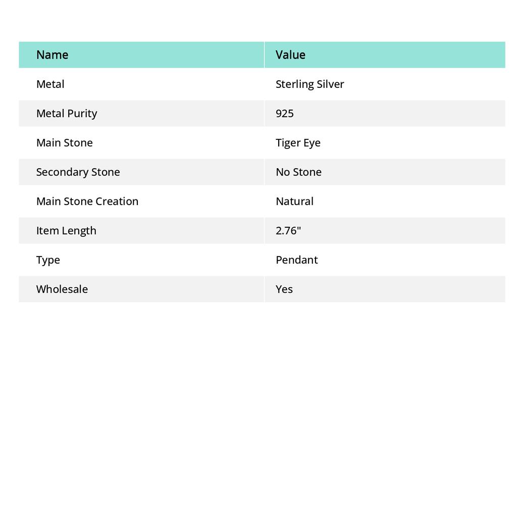 Подвеска из стерлингового серебра 925 пробы с натуральным тигровым глазом 2,76 дюйма