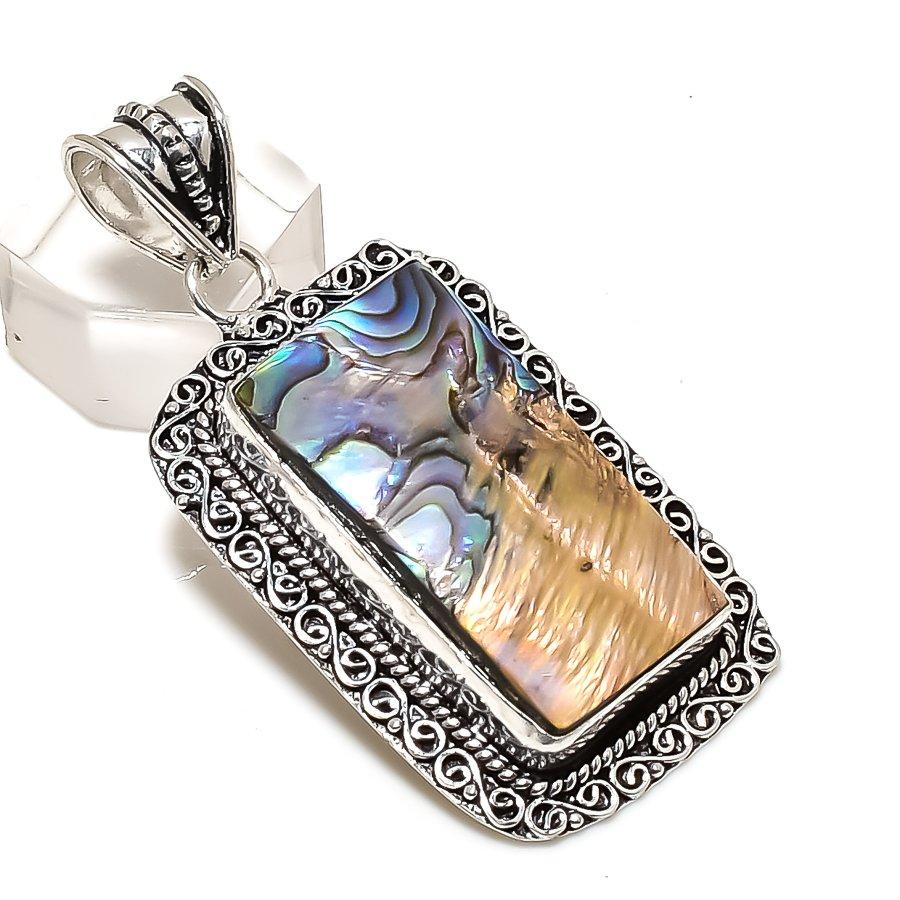 Натуральный камень из раковины абалона, серебро 925 пробы, ювелирная подвеска 2,29"