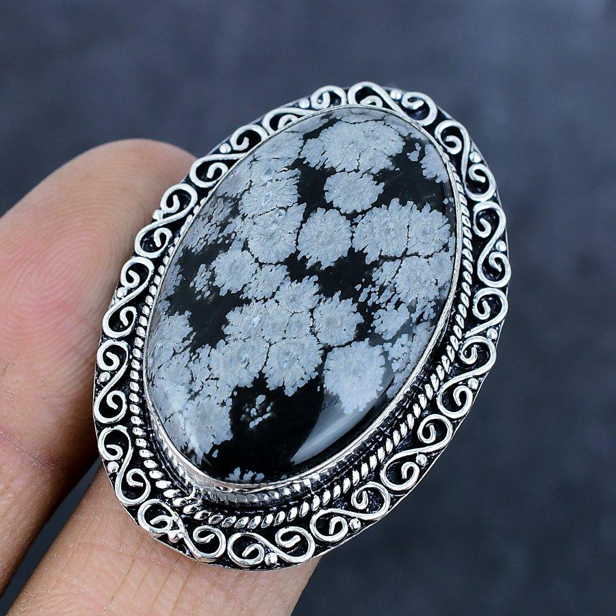 Натуральный камень Снежный обсидиан Ювелирное изделие из серебра 925 пробы Кольцо Размер 7 o0v41
