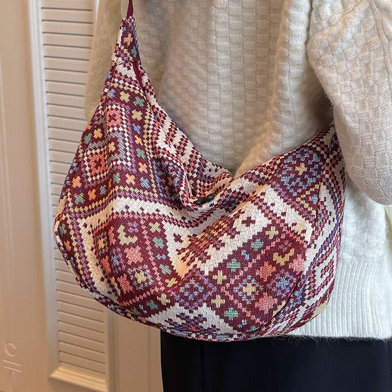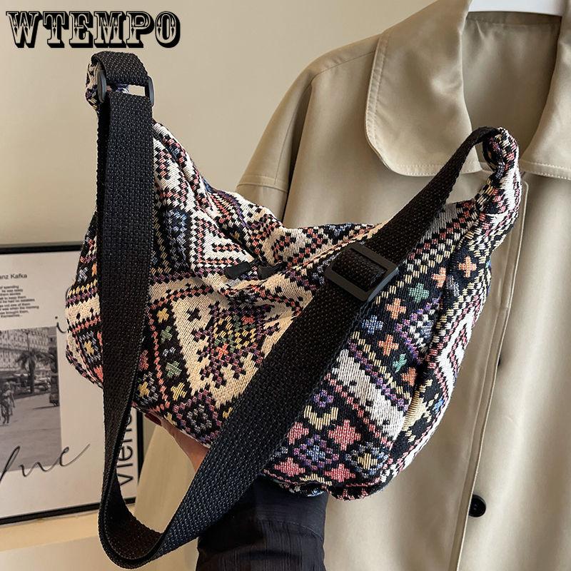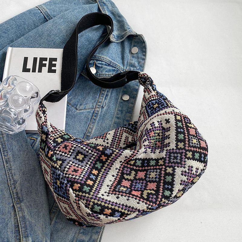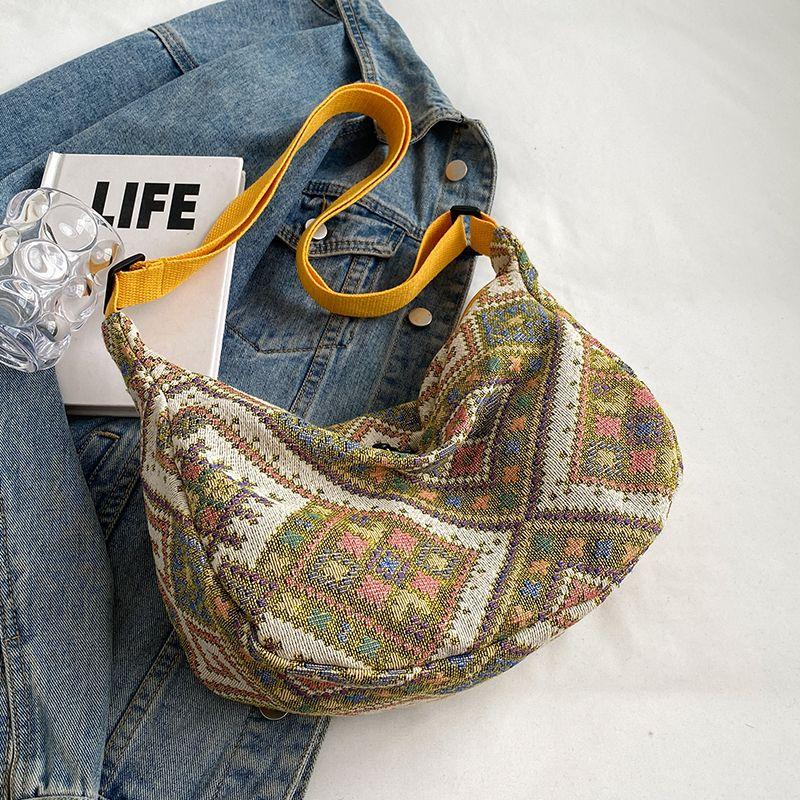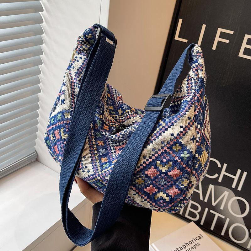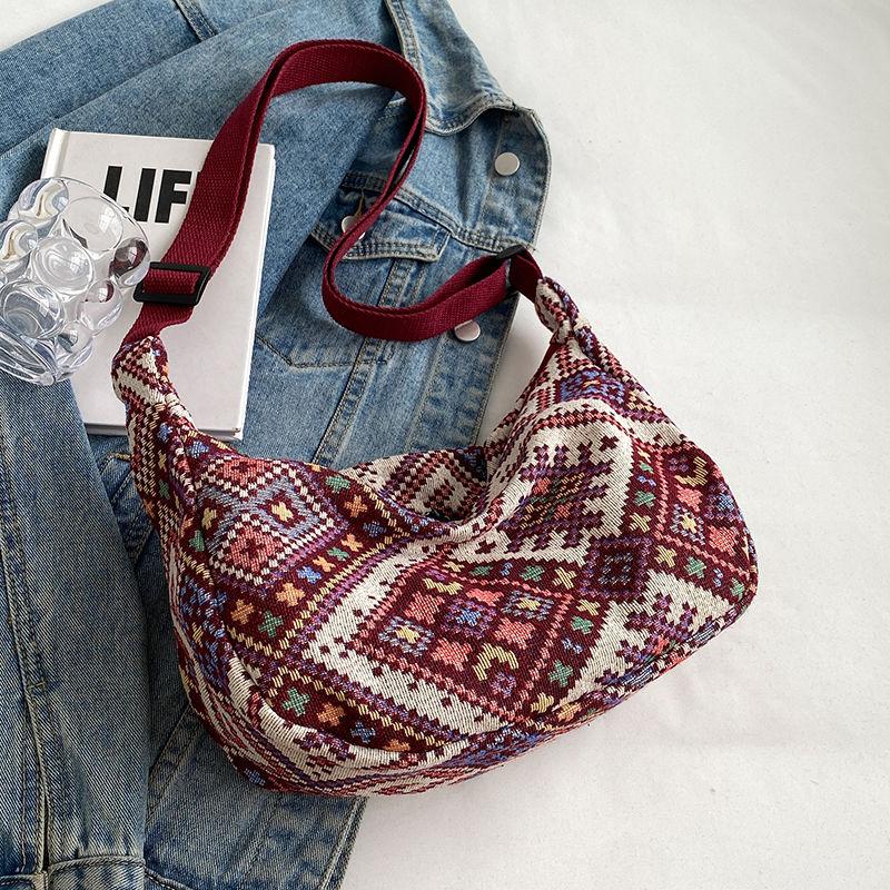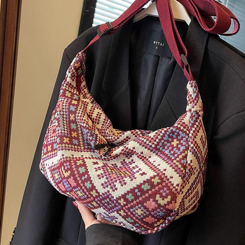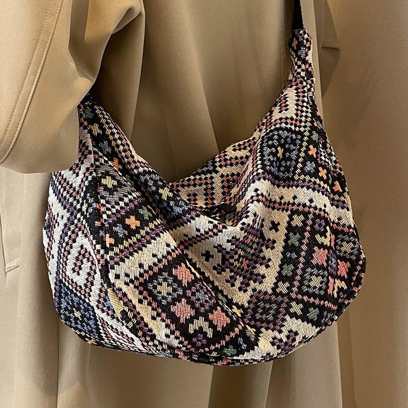 Большая вместительная сумка-пельмень в этническом стиле для женщин, сумка через плечо для женщин, холщовая сумка через плечо