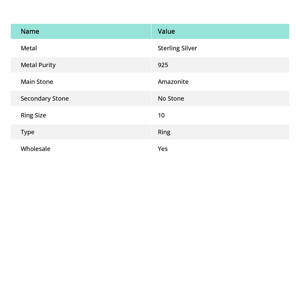 Кольцо из серебра 925 пробы с натуральным амазонитом, размер 10 k3k20