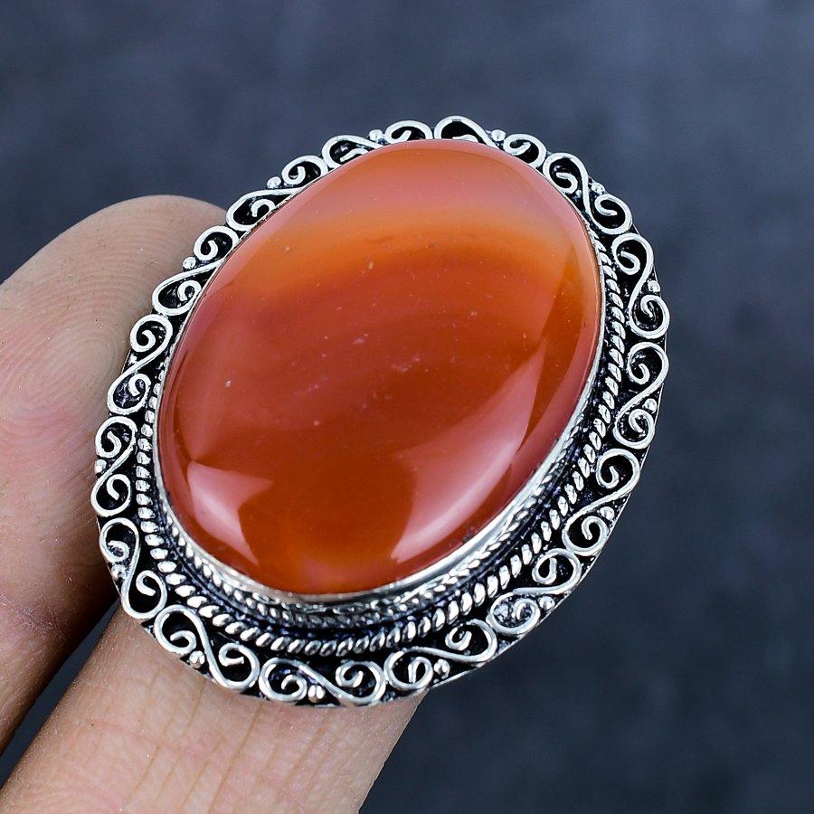 Кольцо из серебра 925 пробы с натуральным камнем сердоликом, размер 8, p2B57