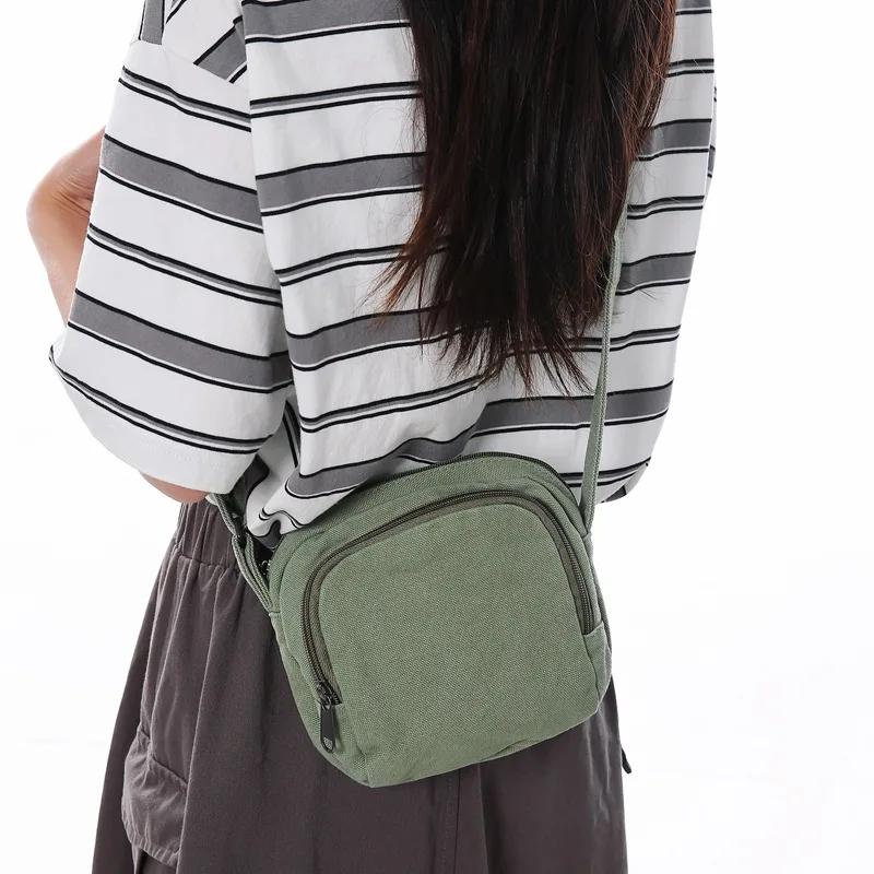 Маленькая однотонная квадратная сумка для женщин, сумка через плечо из стираного холста для мобильного телефона, универсальная повседневная сумка