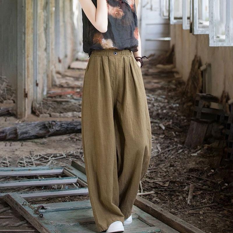 2025 Новые свободные повседневные брюки с высокой талией из хлопка и льна, брюки в стиле ретро с широкими штанинами — купить товар онлайн с бесплатной доставкой до всему миру!