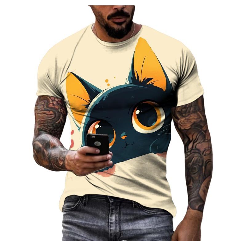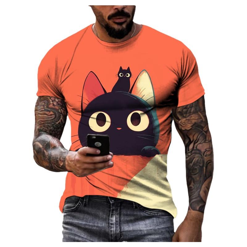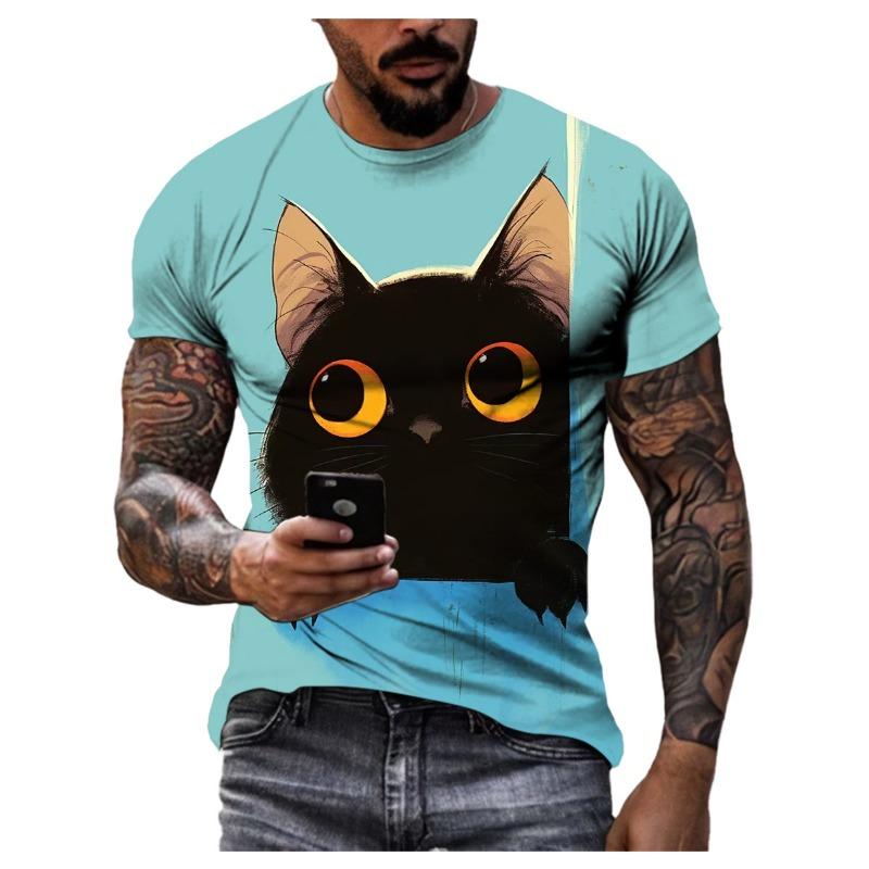 Летняя модная повседневная футболка с рисунком мультяшного кота для мужчин, новая забавная футболка с рисунком аниме с 3D-цифровой печатью в стиле Харадзюку с круглым вырезом