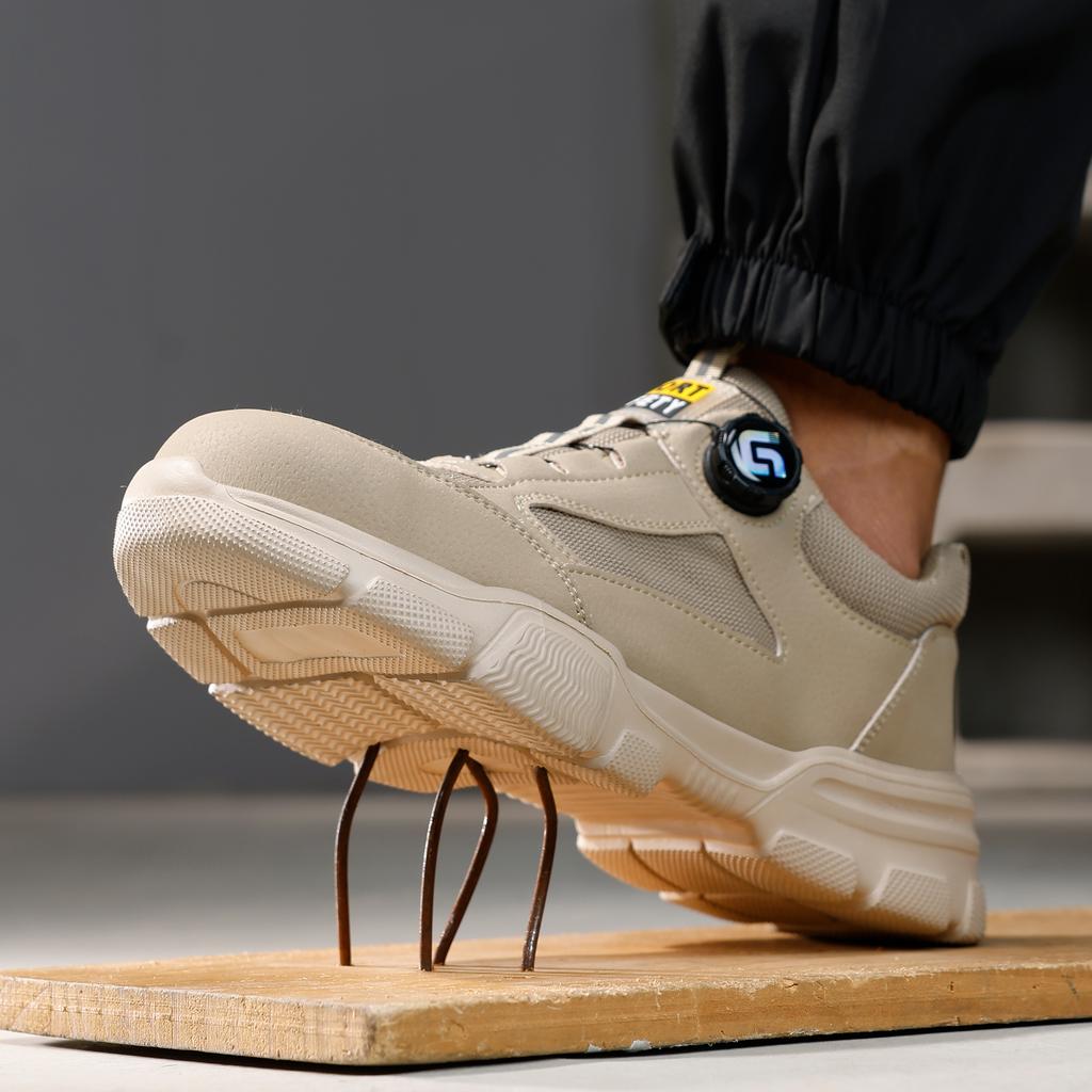 Новые рабочие туфли с вращающимися кнопками, защитные кроссовки, дышащие летние мужские ботинки, легкая неразрушимая обувь со стальным носком