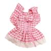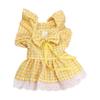 1 комплект платьев принцессы для домашних животных кружевное лоскутное удобное квадратный воротник оборки рукава клетчатый принт юбка для щенка собака ошейник с бантом для домашних животных