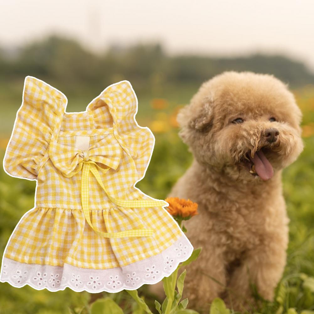 1 комплект платьев принцессы для домашних животных кружевное лоскутное удобное квадратный воротник оборки рукава клетчатый принт юбка для щенка собака ошейник с бантом для домашних животных — купить товар онлайн с бесплатной доставкой по всему миру!
