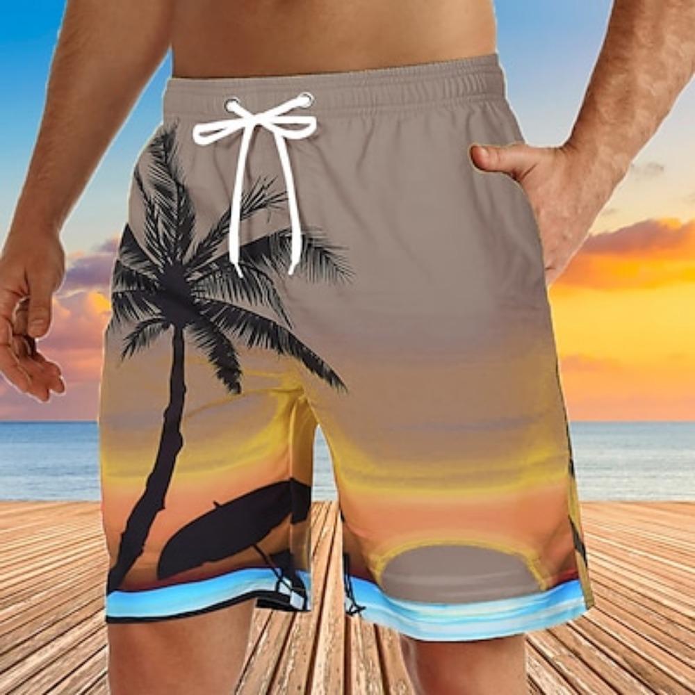 Мужской купальник-шорты Coconut Tree со средней талией, уличная одежда в гавайском стиле, в стиле бохо, повседневная, праздничная, с эластичной резинкой на талии, дизайнерская одежда