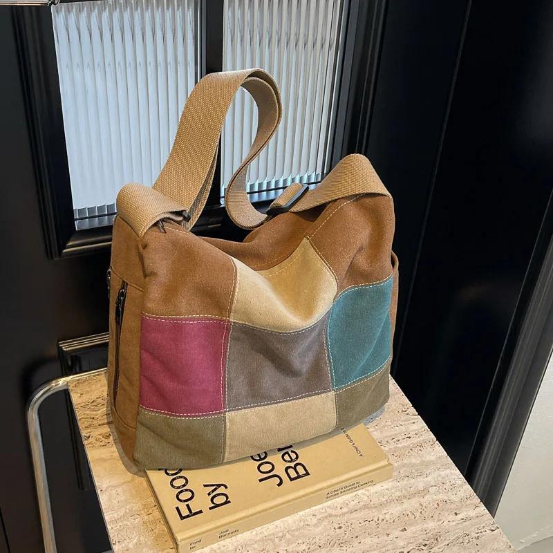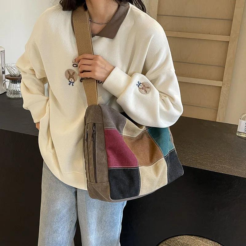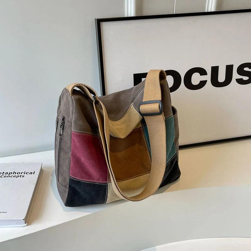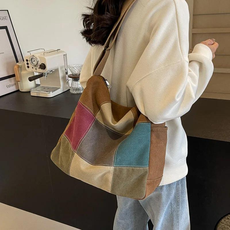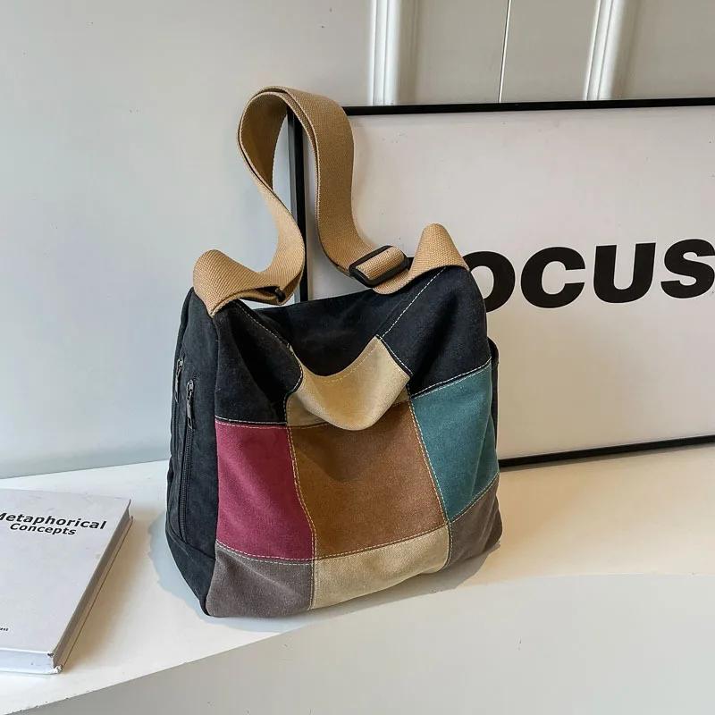 Большая вместительная контрастная цветная холщовая широкая сумка через плечо для женщин, студенческая дорожная сумка, новая мода