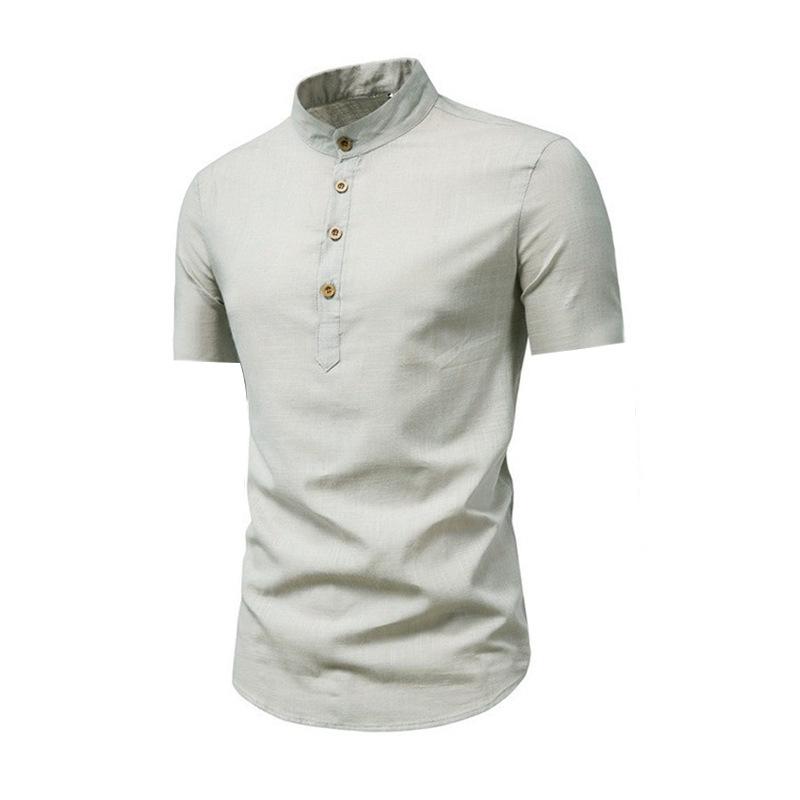 Мужская летняя однотонная рубашка больших размеров с короткими рукавами, стоячим деловым воротником, простая хлопковая льняная блузка