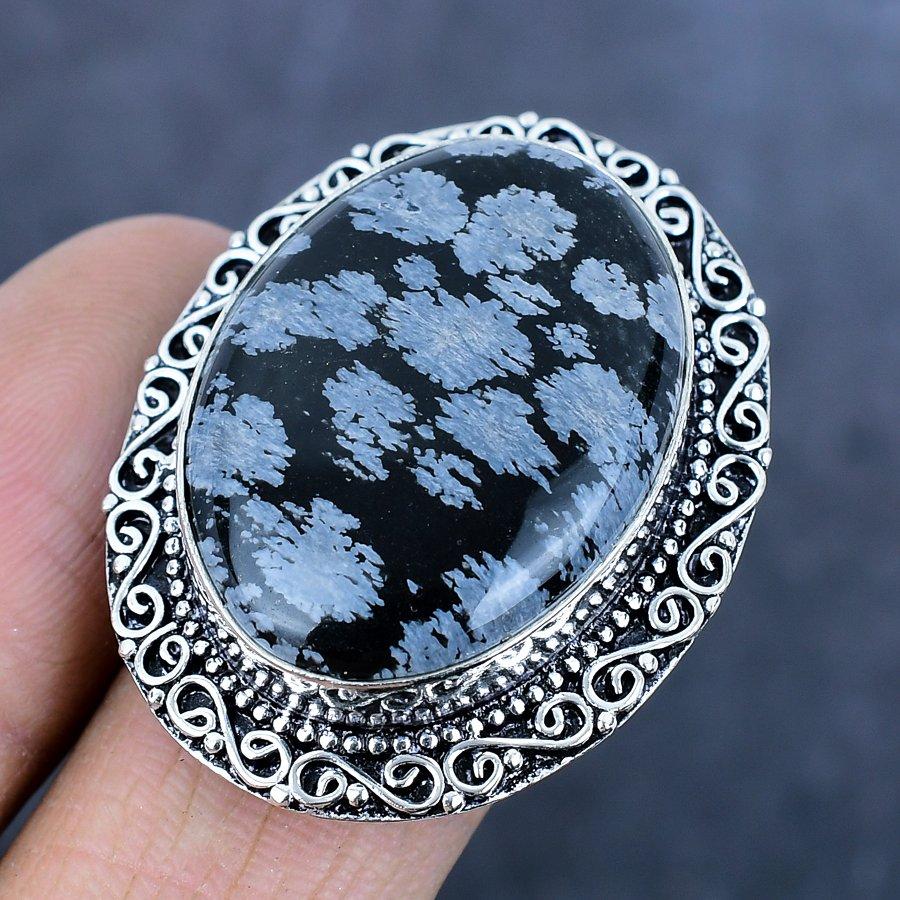 Натуральный камень Снежный обсидиан Ювелирное изделие из серебра 925 пробы Кольцо Размер 9 S0P07