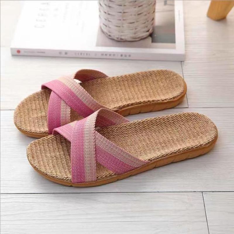 Ретро-модные женские льняные тапочки из плетеной ткани