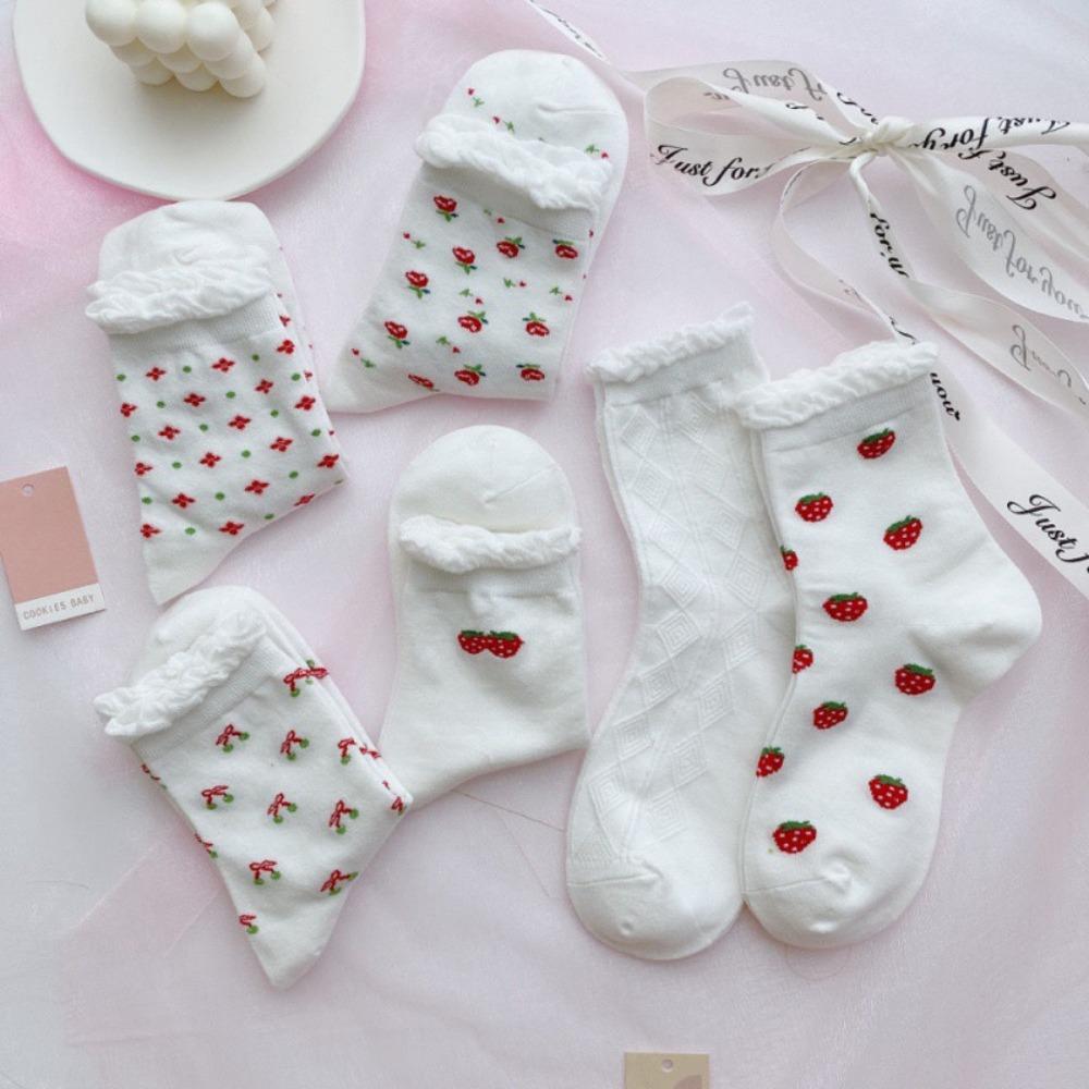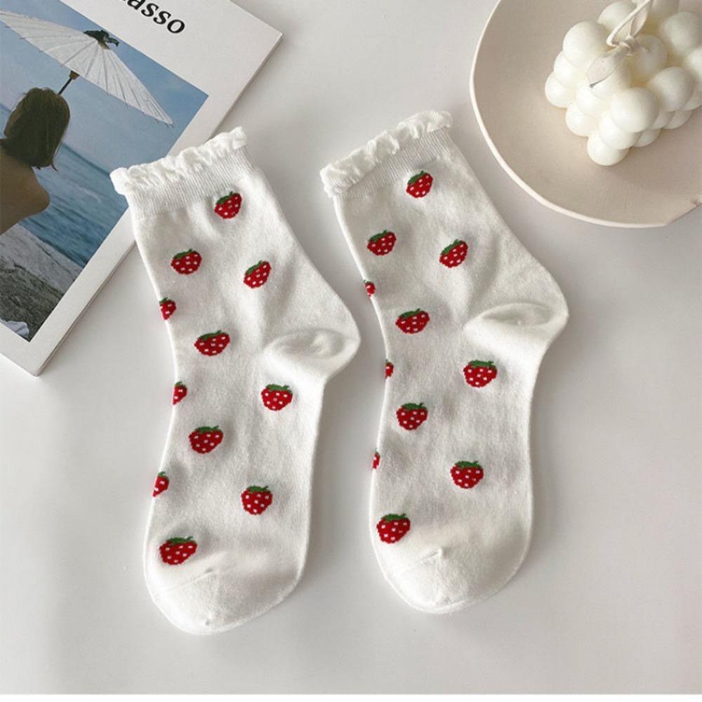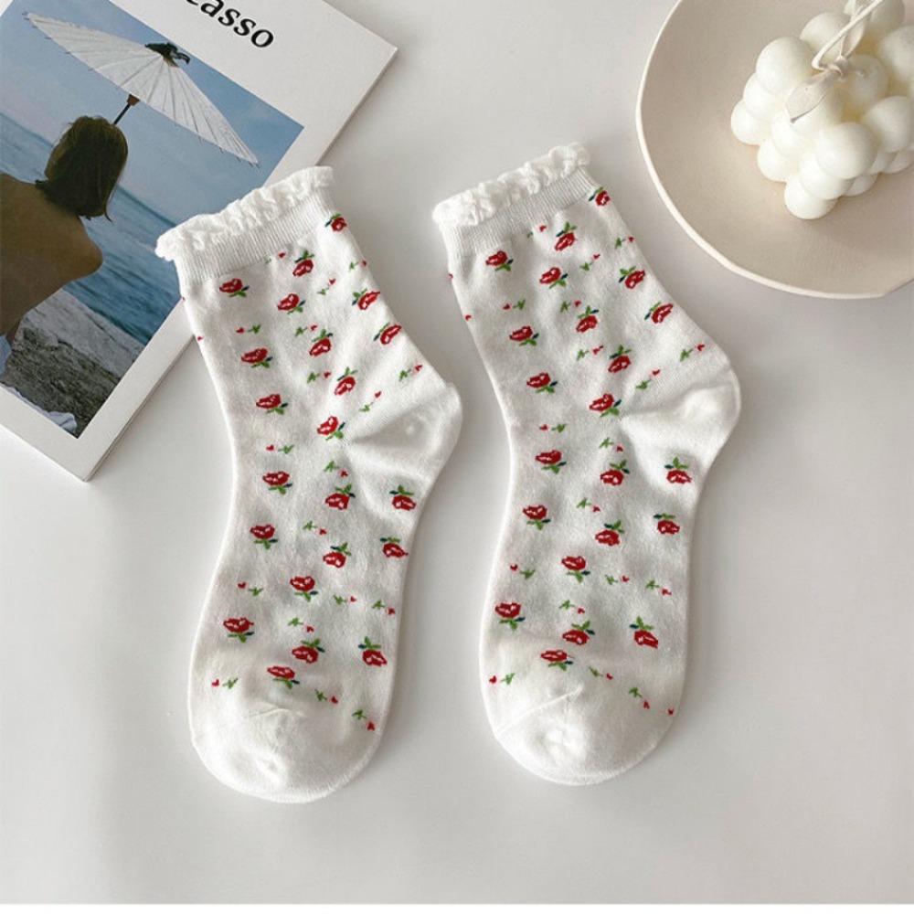 Breathable Ankle Socks Fruits Flower Prints Casual Socks Sweat Absorption Tube Socks