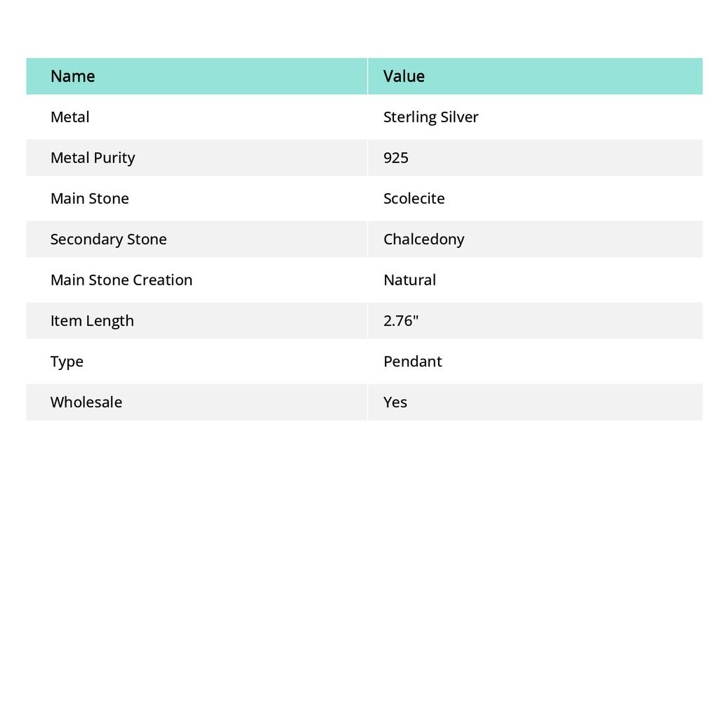 Подвеска из серебра 925 пробы с натуральным сколецитом и халцедоном 2,76 дюйма