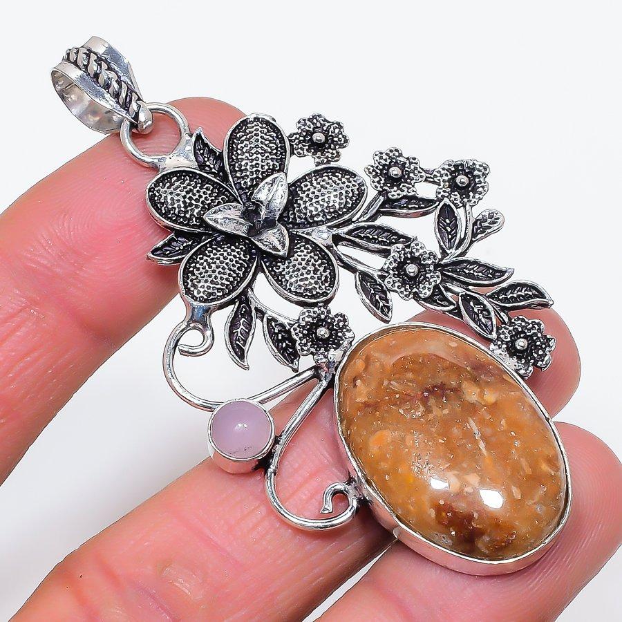 Подвеска из натурального яшмы «Призрачный глаз», халцедона, серебра 925 пробы, 2,96 дюйма