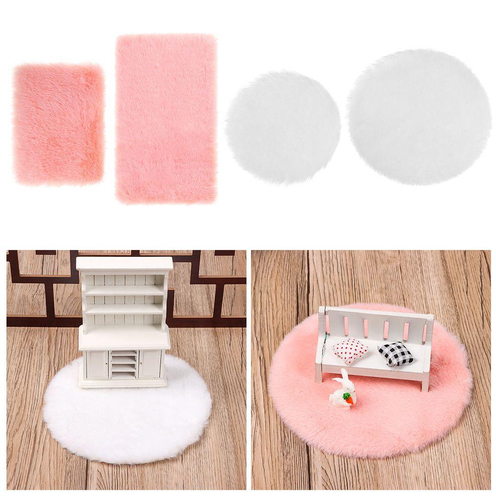 1/12 Scale Nordic Style Dollhouse Plush Carpet Doll Accessories Miniature Hairy Rug Mini Floor Mat
