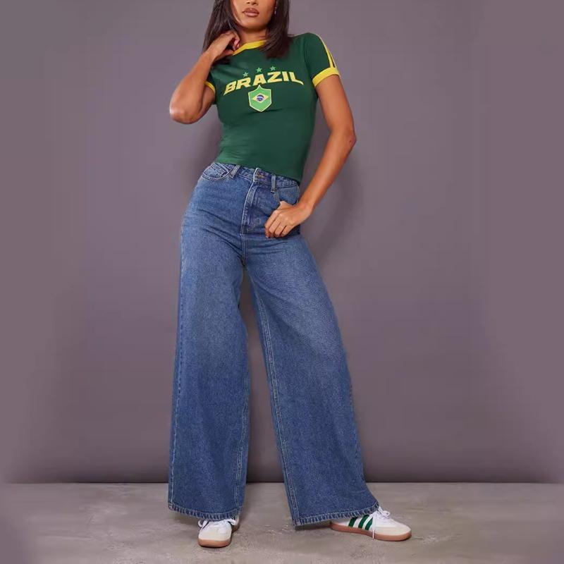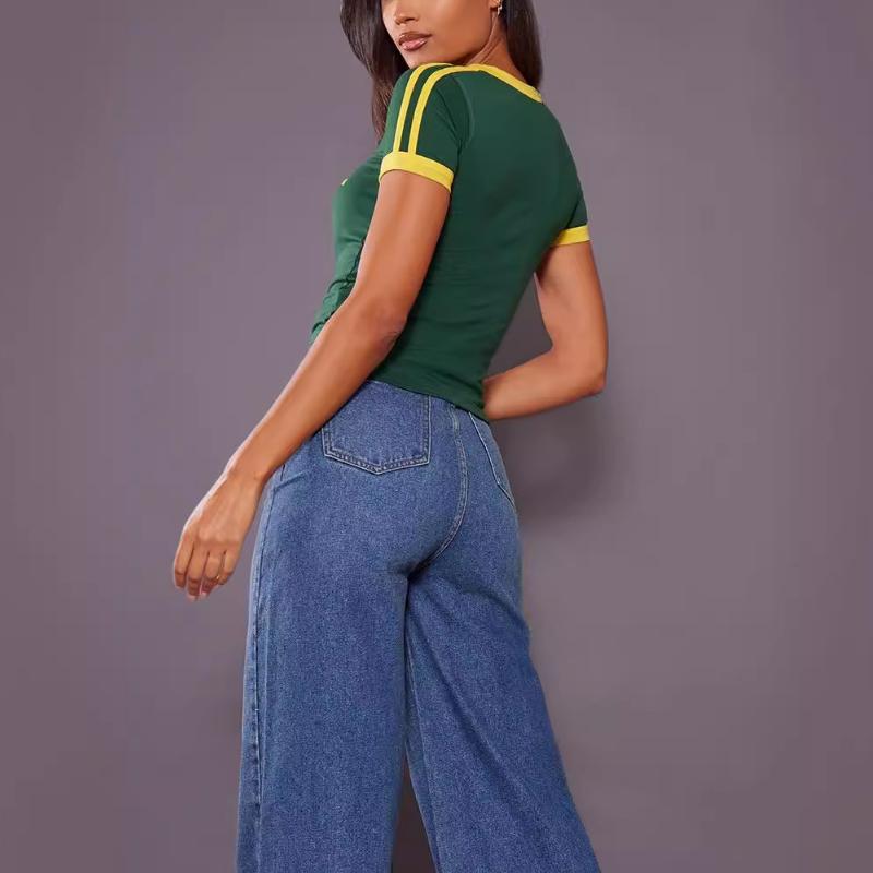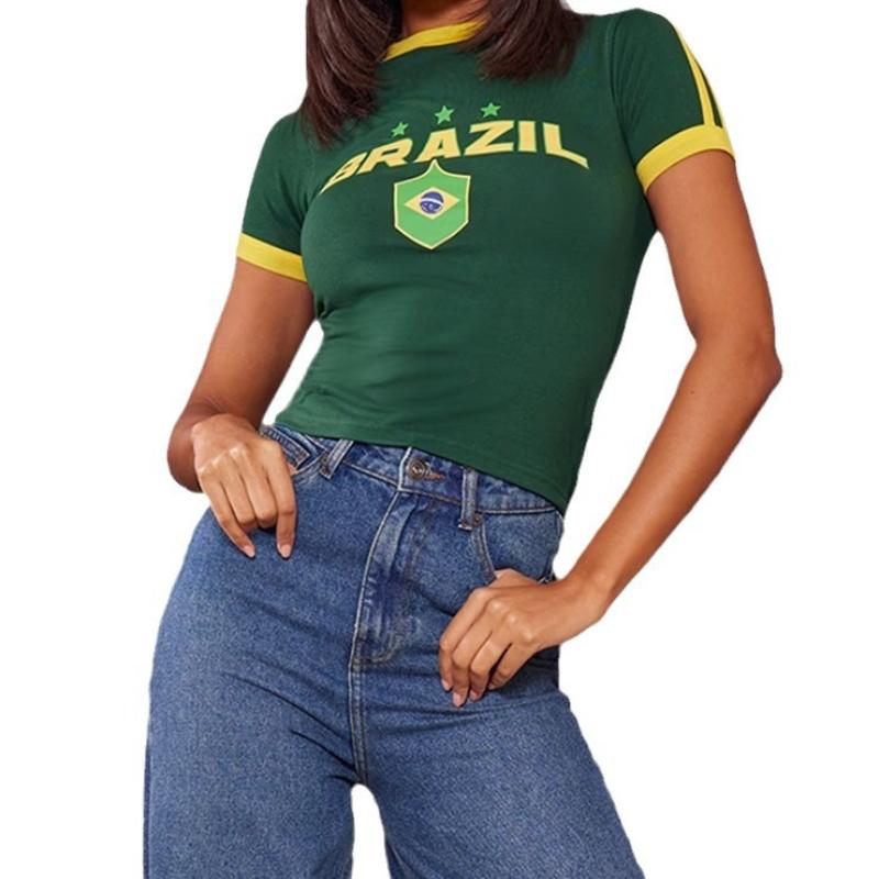 Женская футболка в европейском и американском стиле с короткими рукавами и круглым вырезом, в стиле минимализма и с буквенным принтом