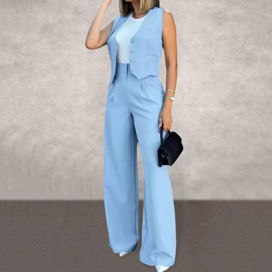 Этот женский комплект из двух предметов изготовлен из смеси полиэстера и спандекса, что обеспечивает воздухопроницаемость, легкость и комфорт.. Идеально подходит для поддержания стильного образа весной, летом и осенью.. Облегающий крой не только подчеркивает ваш силуэт, но и обеспечивает максимальный комфорт.. В комплект входит топ без рукавов и широкие брюки, создающие стильный и непринужденный образ, подходящий для разных типов телосложения..