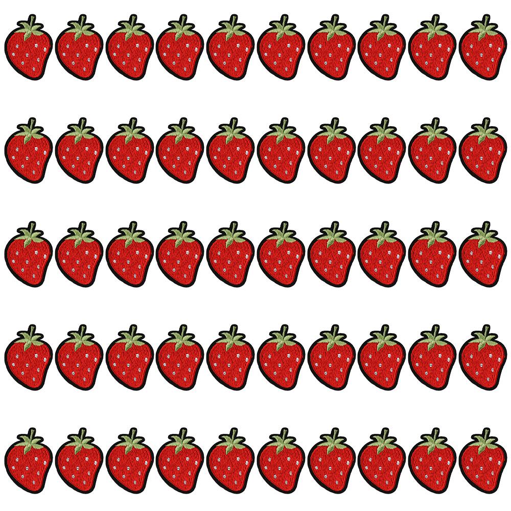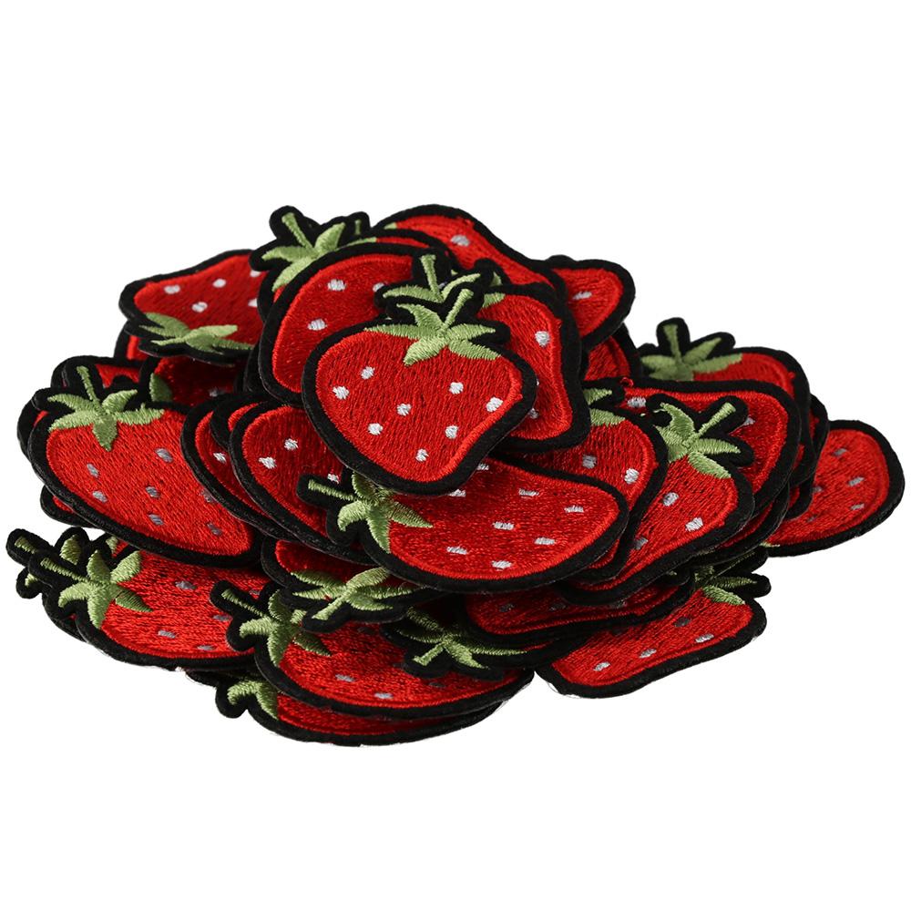 50 шт. 1,7x1,2 дюйма, клубничные вышитые нашивки, красные аппликации на одежду для курток, джинсов