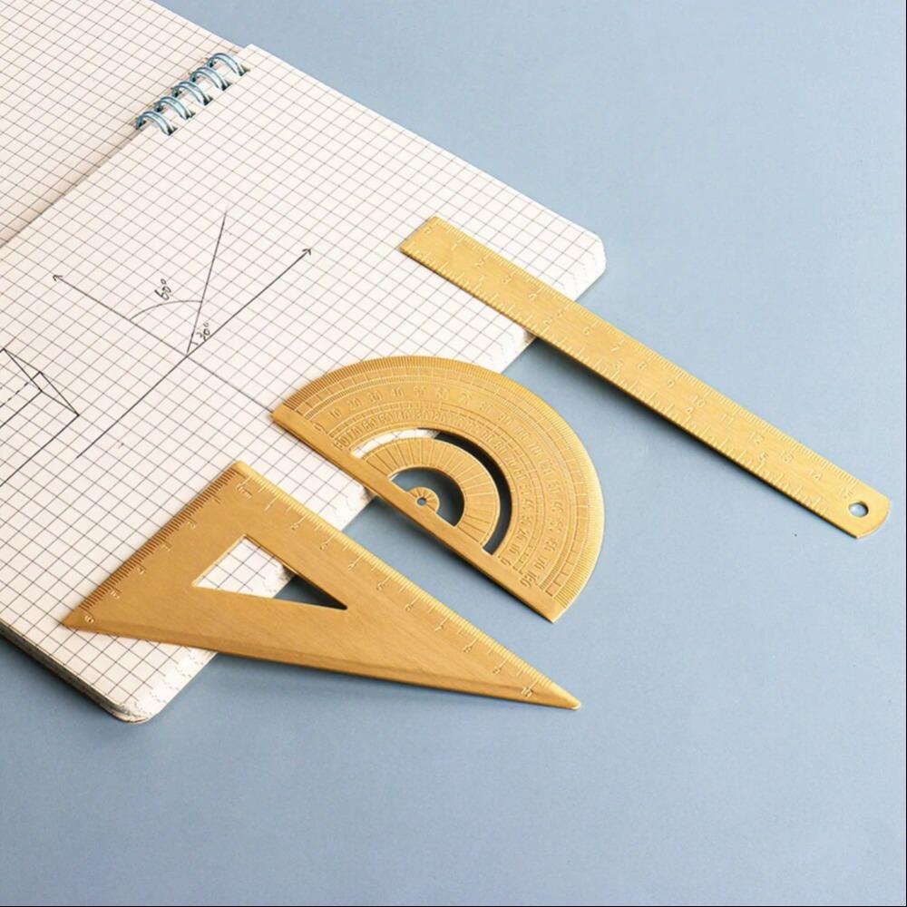 Измерительный инструмент Инструменты для рисования Живописи Винтажный металлический Треугольник Линейка Транспортир Для студентов