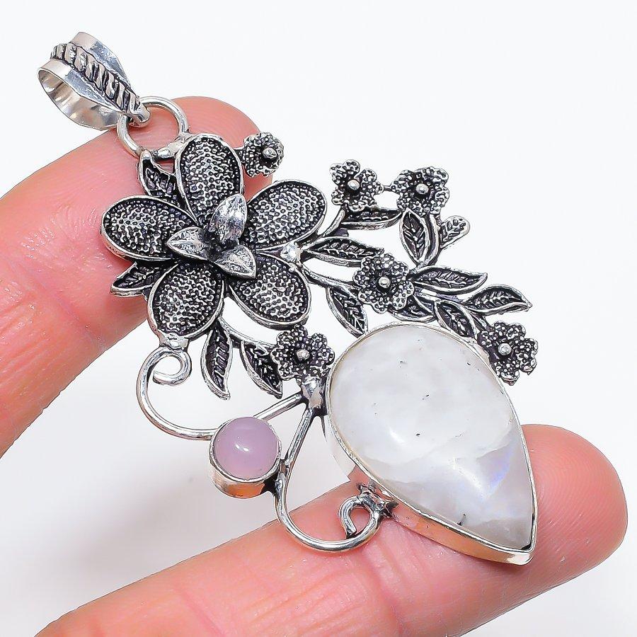 Подвеска из серебра 925 пробы с натуральным лунным камнем и халцедоном 2,92 дюйма