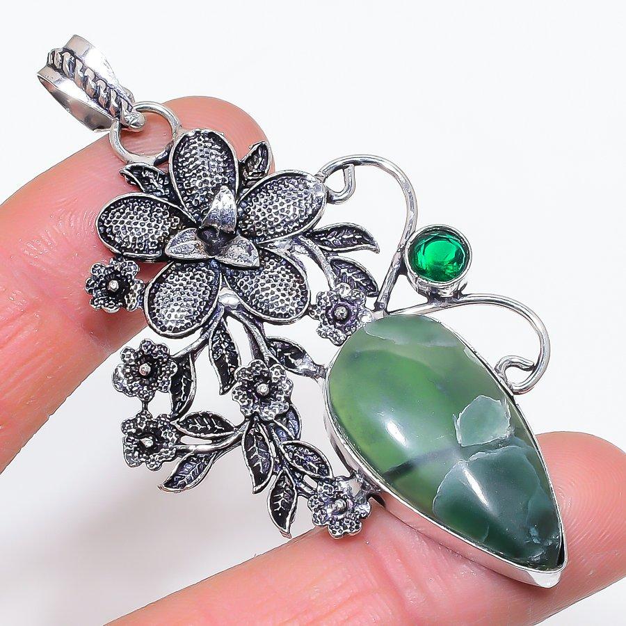 Подвеска из серебра 925 пробы с натуральным нефритом и диопсидом 2,99 дюйма Q1d69