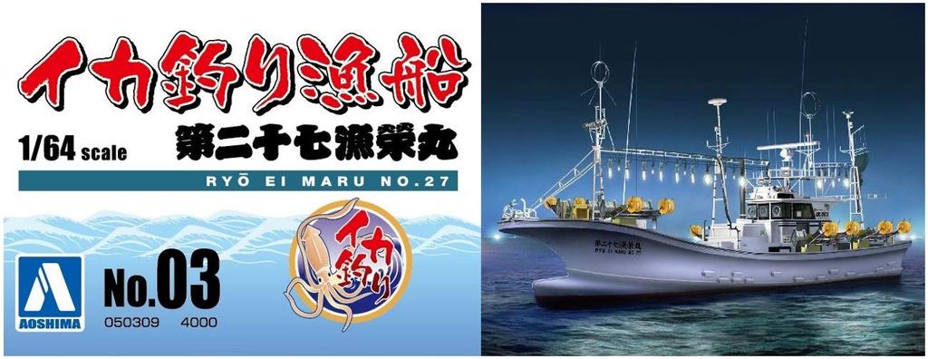 Рыболовная лодка Aoshima Bunka Kyozaisha, пластиковая модель лодки для ловли кальмаров 1/64 № 03